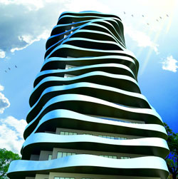 Heliopolis is an upcoming premium residential project in Mumbai. This project will highlight the steel frame structure, neo-retro Gaudi inspired styling and embedded intelligent technologies. Indore will boast of twin towers-Silver Realty with twisting sculptural design. Each apartment will have a unique outdoor space. Viento Villas in Pune will highlight floor to ceiling operable windows to provide unhindered views of the surrounding landscape. OVO is another significant apartment in Pune with a 1.5 acre fully landscaped garden free from vehicular traffic and shaded most of the day by the buildings that surround it. A club at the fringe of the development echoes the contemporary aesthetic of the residential buildings and is planned and located in a manner to provide maximum privacy around the pool area.