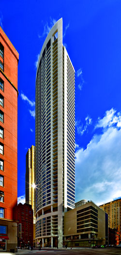 A significant challenge faced by the design team was an evolving interpretation of which floors were an institutional use by the state. Their occupancy review and imposition of new code criteria went from three floors to the entire project. The design team educated the inspectors and negotiated on behalf of the owner with agencies resulting in reduction draconian standards that would have had a negative cost impact on the project. The challenges regarding the site were the existing buildings and their caissons, the tight urban site for construction of a tower of this size, and the soil conditions in this area of Chicago.
