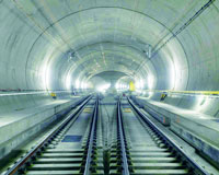 The  sky is still black over the Swiss Alps as we climb aboard a train one  morning in late March and head inside the mountains. In an instant, the  sharp alpine air thickens to a torpid heat reaching nearly 40°C. The  temperature rise is a function of geology, not meteorology we are deep  inside solid rock, in the 57-km-long Gotthard Base Tunnel. More than  1,800 m of mountain is piled above our heads. "This is extremely  high-pressure rock and the water pressure is also very high," says  Renzo Simoni, a Swiss civil engineer and CEO of AlpTransit Gotthard AG,  the company that is overseeing one of the world's most ambitious  engineering projects, as he guides us along a dark tunnel track.  "Working in these conditions is very, very hard."