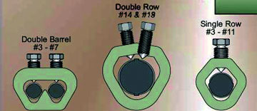Coupling Sleeve with Double Wedge: This coupling sleeve consists of a ductile iron sleeve with two internal wedges. Two series of cone-pointed screws are arranged along the sleeve length, opposite a wedge-shaped profile in the sleeve. Each reinforcing bar extends out of the sleeve by approximately one bar diameter. No special bar end preparation is required. As the screws are tightened, they indent into the surface of the bars and wedge the barsinto the converging sides of the sleeve profile. Screws can be tightened suing suitable impact wrenches or hand-held ratchet wrenches. The heads of screw shear off at a prescribed tightening torque. Bar sizes #3 through #6 plus bars of different sizes or either uncoated or epoxy-coated can be spliced using this coupling sleeve.