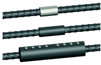This type of splice is in three pieces (the two bar ends and the internally threaded coupler). These systems are also available as weld-on couplers, transitional couplers, and positional couplers.