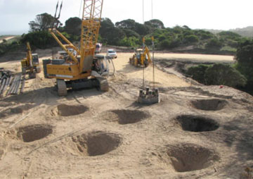 - Construction of overlapping soil-cement columns (in-ground shear walls)