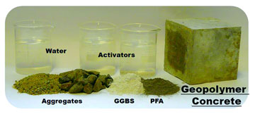 But the main advantage of geopolymerisation over OPC technology is its ability to consume high volume industrial wastes and transform them into high performance concrete.