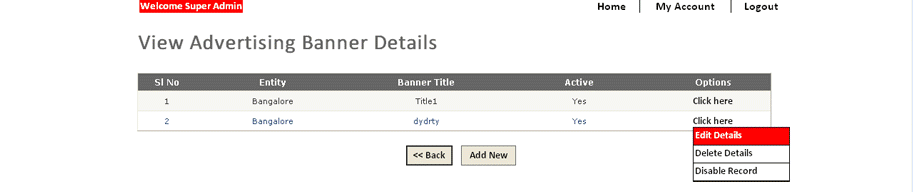 3.We can add Ad Banner Details by clicking on Add New Button, where the page is