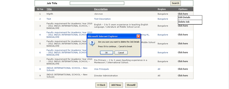 8.Job can be deleted, by Clicking on Click Here button and then click on Delete