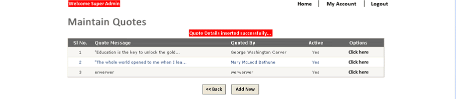 10.Quotes can be deleted, by Clicking on Click Here button and then click on Delete