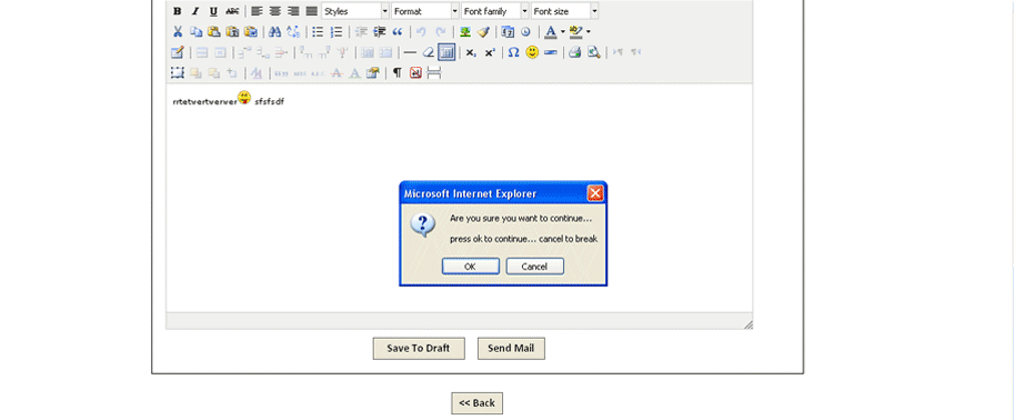 12.Enter the details and click on Send Mail button. A pop up window for confirmation