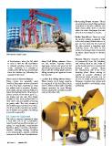 Cover Feature overhead-cranehoist.com • Reversing Drum mixers- These are used in larger work. This machine comprises of two sets of blades, one blade mixes while drum is rotated while the other discharges the mix when drum is rotated in reverse. • Roller Pan Mixer- These are used for mortar mixing in general. The roller and mixing blades rotate in a pan and not only mix the material but also produce a kneading and crushing action. The drive to the rollers and mixing blade is provided by either diesel engine or electric over head or Gantry Cranes motor. • Transit Mixers- Concrete mixed A disadvantage when the lift shaft • Hand fed tilting mixers- These is transported from the batching is used is that the lift installation are the smaller capacity mixers. and mixing plant to site. Fully or is delayed pending removal of the Aggregate, cement and water are fed partly mixed concrete is transported crane. However, it is possible to into the drum by hand. The revolving through truck mixers, when construct the lift lining and assemble drum with its mixing blades gives a the construction site is far from from the bottom up, following the lifting, combing and agitation to mix batching plant. Entire mixing is passage of the crane. the concrete. carried in journey. Addition of admixtures helps concrete not to Over head or Gantry Cranes • Loader fed tilting drum mixer- set due to delays in transportation. These cranes are generally used These mixers are of larger capacity However, concrete thus mixed and involving large span service areas and as compared to the fed tilting drum carried should be used within 3 hrs are free from foor obstructions. They mixers. Mixer is ftted with a loading preferably. are widely used in erection, foundry, hopper operated by rope. Mixing steel plants, storage yards and different drum is supported on solid iron yoke types of industrial works. These type of and can tilt either side. cranes consist of two main parts i.e., the bridge and the crab. The bridge consists of two main girders fxed at their end to end and capable of moving on gantry rails. The crab consists of the hoisting gear mounted on a frame. The frame itself is mounted on another set of wheels and capable of travelling across the main girder. 10. Concrete Equipment The role of concrete equipment plays a very vital role in the construction industry and they vary from simple 10/7 mixers to complicated, computerized batching plants. Concrete production involves batching, mixing, handling nf-concrete-batching-plant.com and transportation, placing, fnishing curing as per the desired specifcations. Vol: 3 Issue: 11 November 2014 Built Expressions PG 51