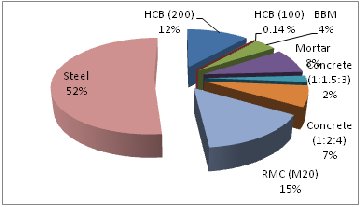 Fig. 23: Percentage Volume and Embodied Energy- Hostel Block