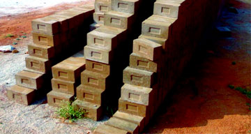 - Load bearing ability: These blocks are load bearing (the lowest strength being M6 compared to the generally available concrete block which is only M3.5 in strength). Hence, it is possible to build multiple storeys with EMU blocks without the use of an RCC framed structure. If rebar is required anywhere, they can be easily inserted vertically or horizontally into the blocks without the need for expensive and time consuming shuttering. Depending on the design, savings of up to 30 percent can be achieved by reducing the use of RCC. Reinforcement can be introduced almost anywhere – along the length of the wall and/or along the height of the wall, alternative load transfer paths are available. Masonry structures have more redundancies than moment-resisting framed structures where only discrete elements transfer loads.
