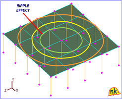 My presentation in court next day included (of course in colour PowerPoint) of a fairly exhaustive analysis of loss of the central 1, 5 and 9 legs (Fig. 14), and (alternatively) the corner 1, 3, and 6 legs. The reactions simply re-distributed themselves at the still active legs - in what I called the 'ripple effect', surviving at least for the first two rounds of losses.