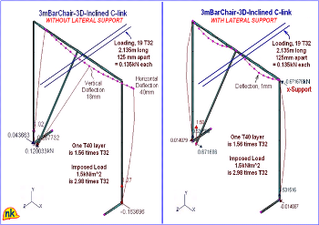I analysed the chairs from fundamental structural analyses principles. As there were only six joints and five members, simple moment distribution would have given the answers. Computer analysis with the stiffness method was used only for speed and convenience.