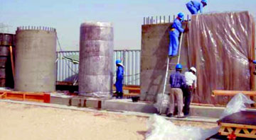 Since the project required more than 300,000 cubic meters of concrete, an optimum concrete mix design proportions are required to achieve high concrete strength, high flow rate, high early strength, high modulus of elasticity, low heat of hydration, and high pumpability. Achieving these requirements required optimum selection of all the raw materials proportions and verification of a comprehensive concrete testing program.