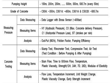 Table3: Preliminary Concrete Pumping simulation and concrete testing program