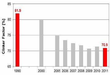 Level of clinker in cements produced by companies of the Holcim group