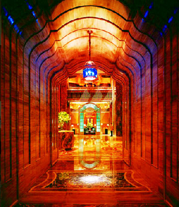 This describes the overall style of the hotel as Portuguese with a hint of the Orient. It reveals an ornate richness and attention to detail that is only seen in Portuguese grand houses and castles. This theme was interpreted in different ways throughout the various areas of the hotel and the client gave a very clear direction to incorporate a storyline relating all of the spaces together. The link between these spaces and the heart of the resort is the Grande Praça. Two and a half times the size of the Conservatory at Las Vegas Bellagio, the Grande Praça showcases European-inspired architecture. The design of one façade in particular is reminiscent of the central train station in Lisbon. The high glass ceiling allows maximum natural light into the courtyard creating an outside, inside. This concept is unique in Macau and its grandeur inevitably extends to the exquisite western and oriental cuisine of the resort’s 12 themed bars and lounges.