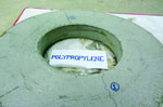 e) Concrete with and without fibers were poured into three separate ring-assemblies clearly marked and were compacted well with a smooth finish with the help of a straight edge aluminium float.