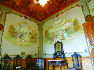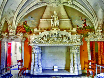 The journey still carries ever more stunning to reach the Chapel of the Holy Trinity. Single nave, the artistic style follows the same decorative lane covers the palace’s main facade. These chapels are seated on the entrance, side entrance, wall sides and especially in the revival of Gothic and Manueline. But the chapel reveals another hidden less watchful eyes, a narrow staircase located at the entrance on the right descending spiral to the crypt. There is temple stripped of decoration with mosaic pavement covered with black and white plaid dip place in darkness.