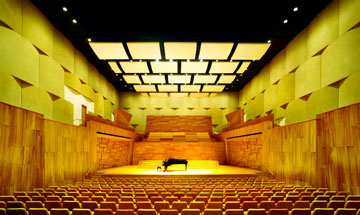 708 seats are arranged at the hall. An innovative motorized choir stall allows the stage depth to be adapted to accommodate both large orchestral and small ensembles. The application of visual elements such as the acoustic banners also serves to reduce aberrance while maintaining high clarity in all configurations and room formats.
