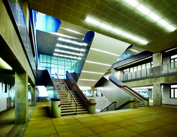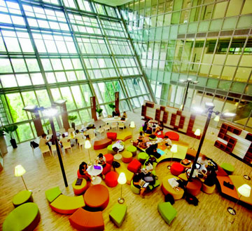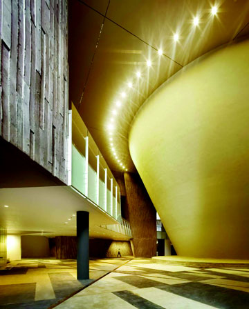 Ar. Wong Mun Summ says “The Backdrop was envisioned as a heavy pedestal, a gargantuan mass of stone carved out and chiselled to reveal dynamic and unexpected volumes of various proportions. It gives students and visitors a stimulating entry into the building and entices passers-by to explore the public areas.”