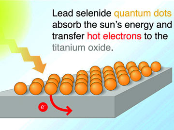 Quantum dots are semiconductor nano crystals which exhibit size-dependent optical and electronic properties. In a quantum dot sensitized solar cell, the excitation of semiconductor quantum dot or semiconductor nano crystal is followed by electron injection into TiO2 nano particles. These electrons are then transferred to the collecting electrode surface to generate photocurrent. The holes that remain in the semiconductor quantum dot are removed by a hole conductor or redox couple and are transported to a counter electrode.