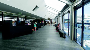 - An enclosed entry lobby displaying tourist information with a central check in ticketing counter area for all ferries