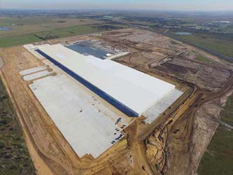 Due to be completed mid-year, the new building has already been described as the largest tilt-wall industrial building in the world, second only to Boeing's aircraft assembly plant in Everett, Washington. Tilt-up is a form of construction in which the wall is precast horizontally on the ground adjacent to its permanent location and then lifted up into its vertical position.