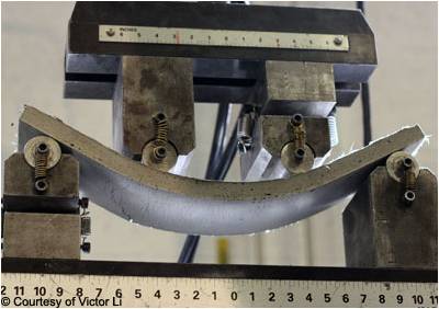 The materials are usually supplied in a three-component premix: powders (Portland cement, silica fume, quartz flour, and fine silica sand) pre-blended in bulk-bags; super-plasticizers; and organic fibers. The ductile behavior of this material is a first for concrete, with the capacity to deform and support flexural and tensile loads, even after initial cracking. The use of this material for construction is simplified by the elimination of reinforcing steel and the ability of the material to be virtually self placing or dry cast.
