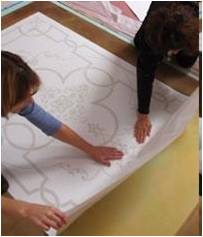Stencils can be used on new concrete or on existing concrete. Stenciling utilizes a blocking technique. A high quality paper stencil is suitable for creating many varied decorative effects in concrete. Stencils for concrete come in a variety of patterns ranging from tile, slate, stone, and many brick patterns. Patterns from drawings, photos, graphics, logos, and even carpet samples can be custom made and transferred to a concrete surface