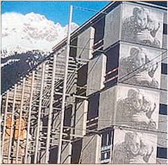 By carefully selecting coloured aggregates and sands, a good reproduction of the photograph or design is obtained. The technique is not restricted to internal and external walls, it can also be used to create photographs or designs onto ceilings or floors.